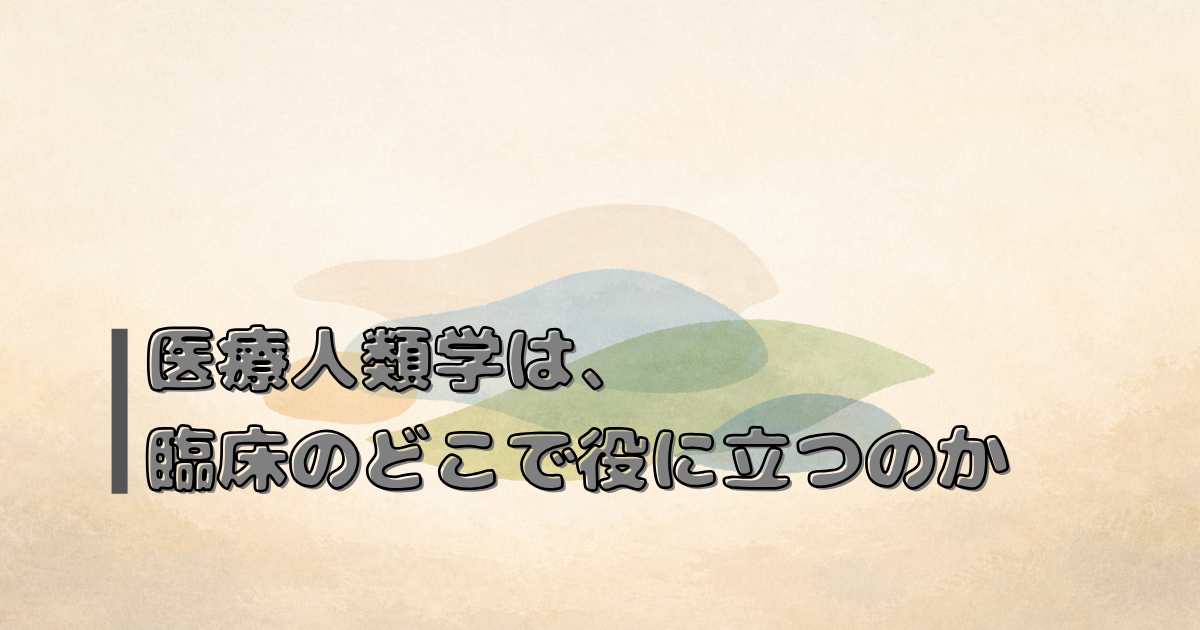 本稿では、医療人類学が「知識」として役立つというよりも、臨床のどの場面で、どのように思考や関わり方を変えるのかを整理してみたいと思います。