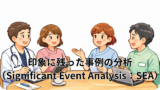 重大な事例・症例に関わった医療者(特に医師)が自ら、あるいは同僚や医療チームを巻き込んで詳細に、かつ系統的に省察することで、今後の改善につなげていくための手法をSEA(Significant Event Analysis)といいます。